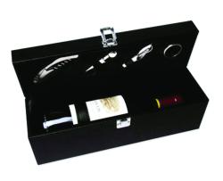 KIT P/ VINHO CAIXA COURO SINTETICO PRETA 04 PÇS