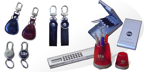 Atualmente trabalhamos com uma diversidade de brindes, entre eles: chaveiros, botons, adesivos, porta documentos, porta canetas, porta cartões, relógios, entre outros, todos eles personalizados com a marca da sua empresa.